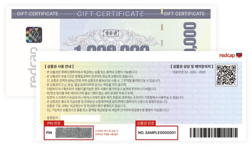 상품권 뒷면 좌측 하단의 PIN 번호 및 우측 하단의 상품권